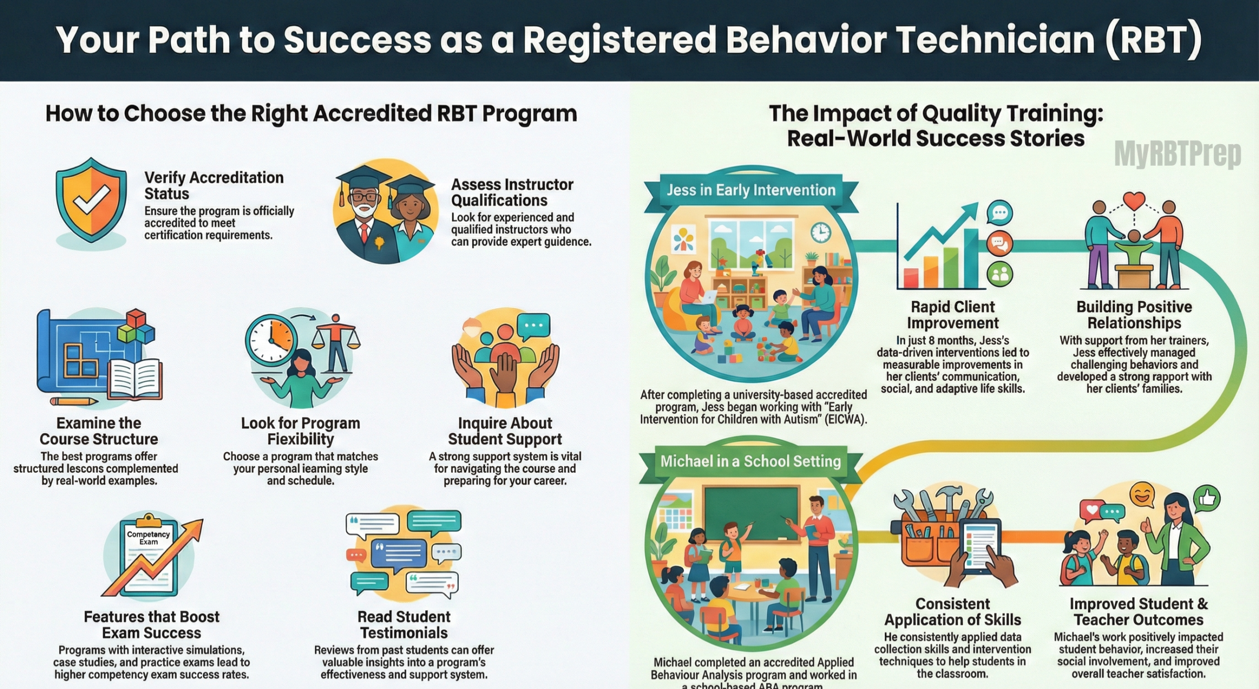 Case studies consistently show that trained RBTs improve client outcomes faster, demonstrating the importance of quality training. The confidence and professional skills gained through accredited programs also lead to higher job satisfaction and long-term career growth. RBTs often witness small improvements in client behavior daily, which accumulate over months to create meaningful life changes for clients and families.
