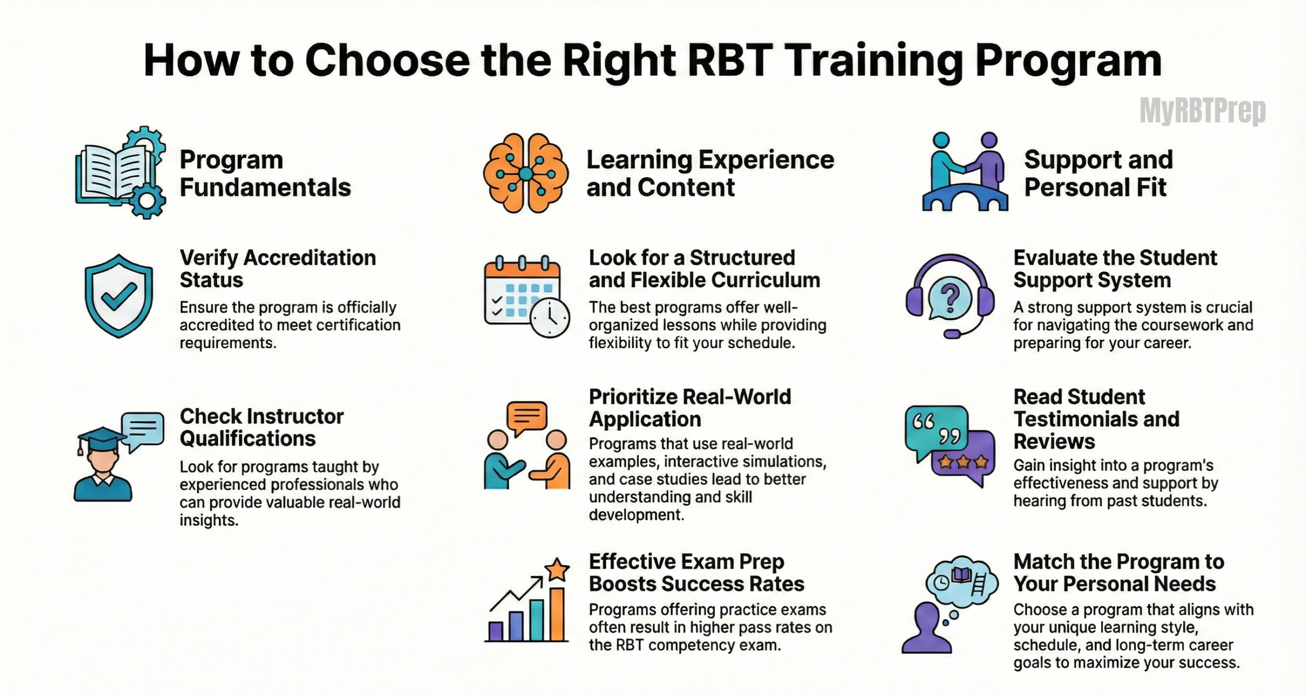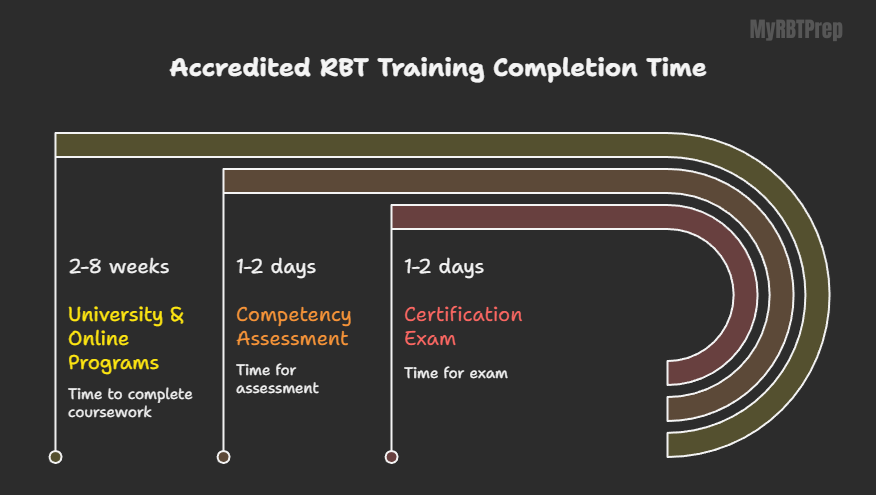 Accreditation also confirms that the certificate is recognized by employers nationwide, giving credibility to your career. Programs are designed to balance practical hands-on strategies with theory, ensuring that every graduate is competent, confident, and ready for the RBT competency assessment and certification exam.