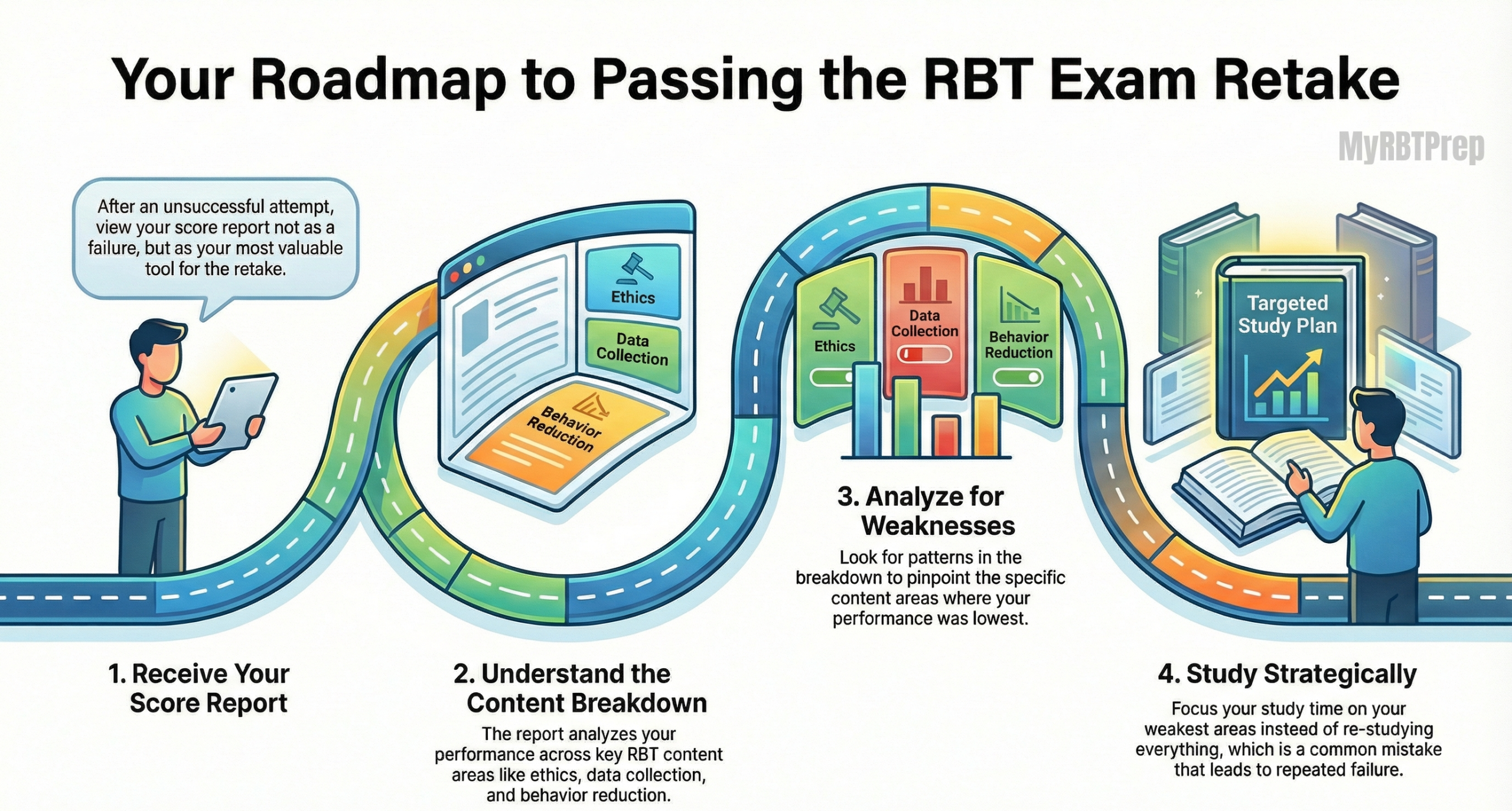 | Smart Study Plan | Start by reviewing your RBT exam score report honestly and identify your weakest domains first. Focus your schedule on these areas rather than trying to study everything at once. |