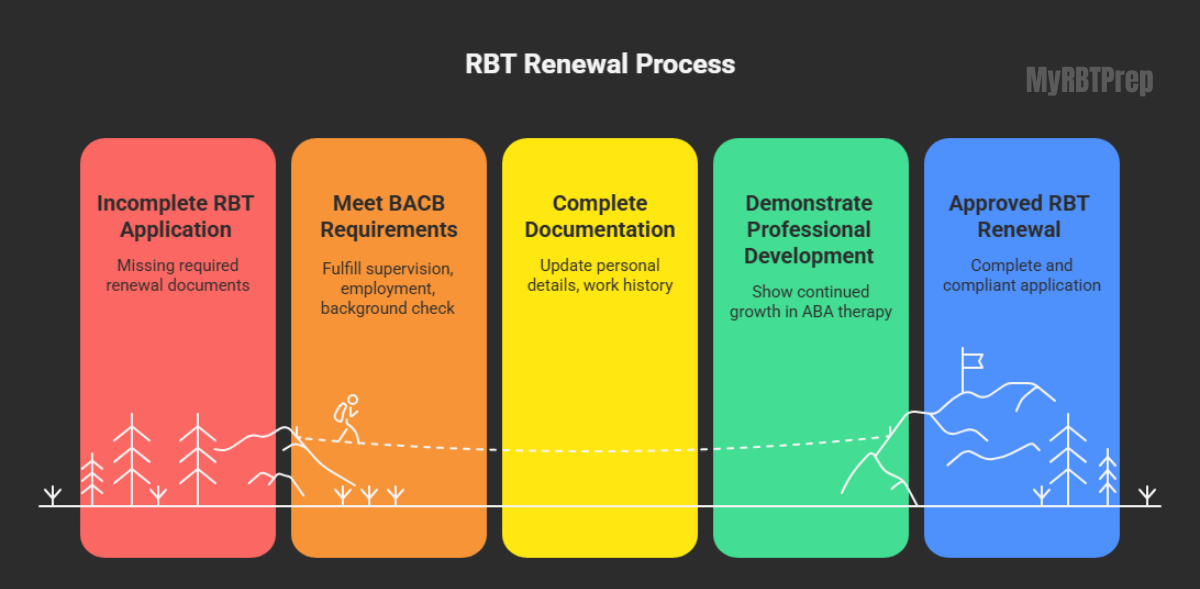 The RBT renewal process guide is easier when you follow it step by step. First, log into your BACB account and find the renewal section. Second, complete your RBT renewal form carefully. Third, upload your documents, including CEU certificates and your competency record. Finally, pay your RBT renewal fee and submit your application.