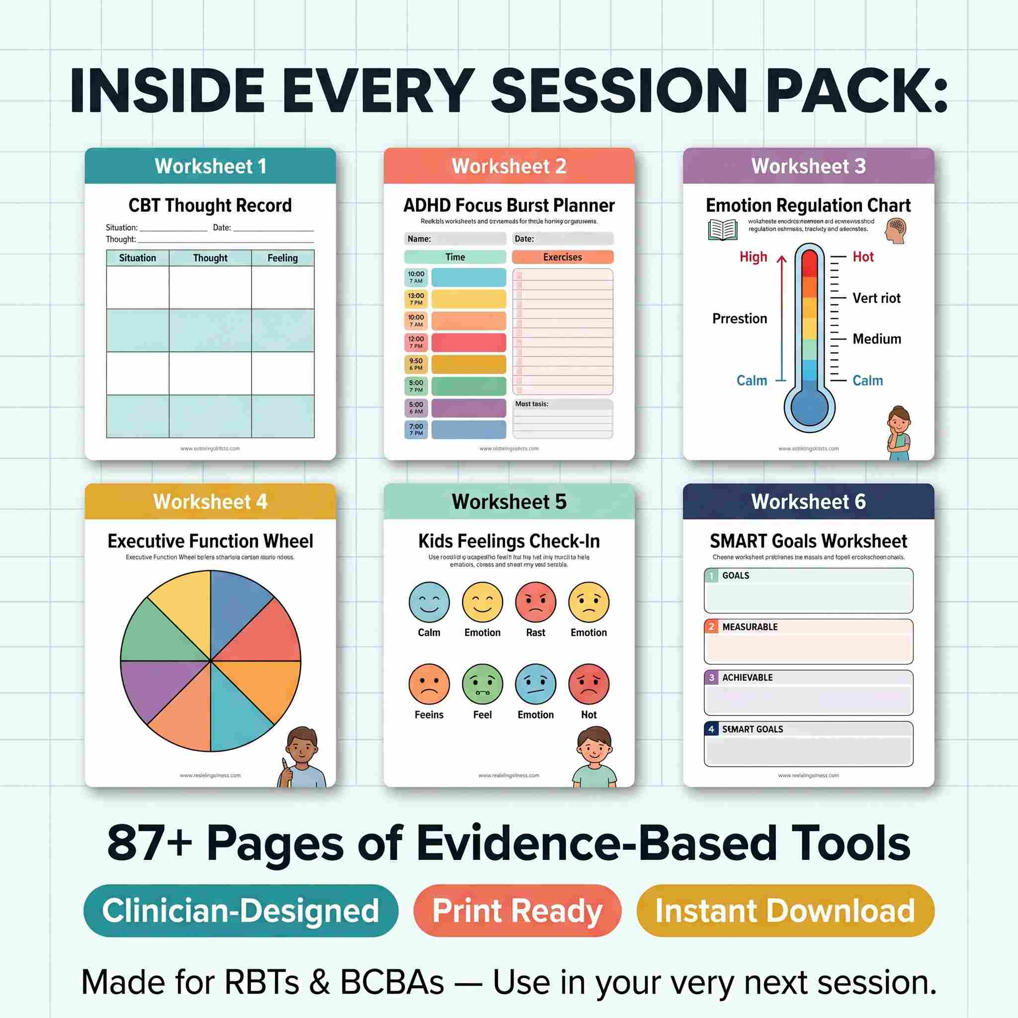 This is not just another worksheet bundle. It’s a structured system of CBT-based and behavior-focused resources that help you guide sessions with clarity, consistency, and purpose.