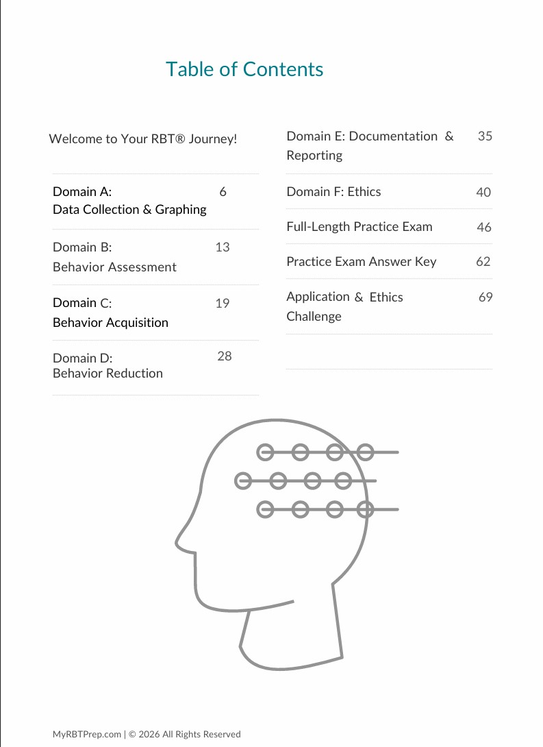 This study guide is 100% aligned with the 2026 RBT Test Content Outline (3rd Edition) and covers all 6 exam domains in full.