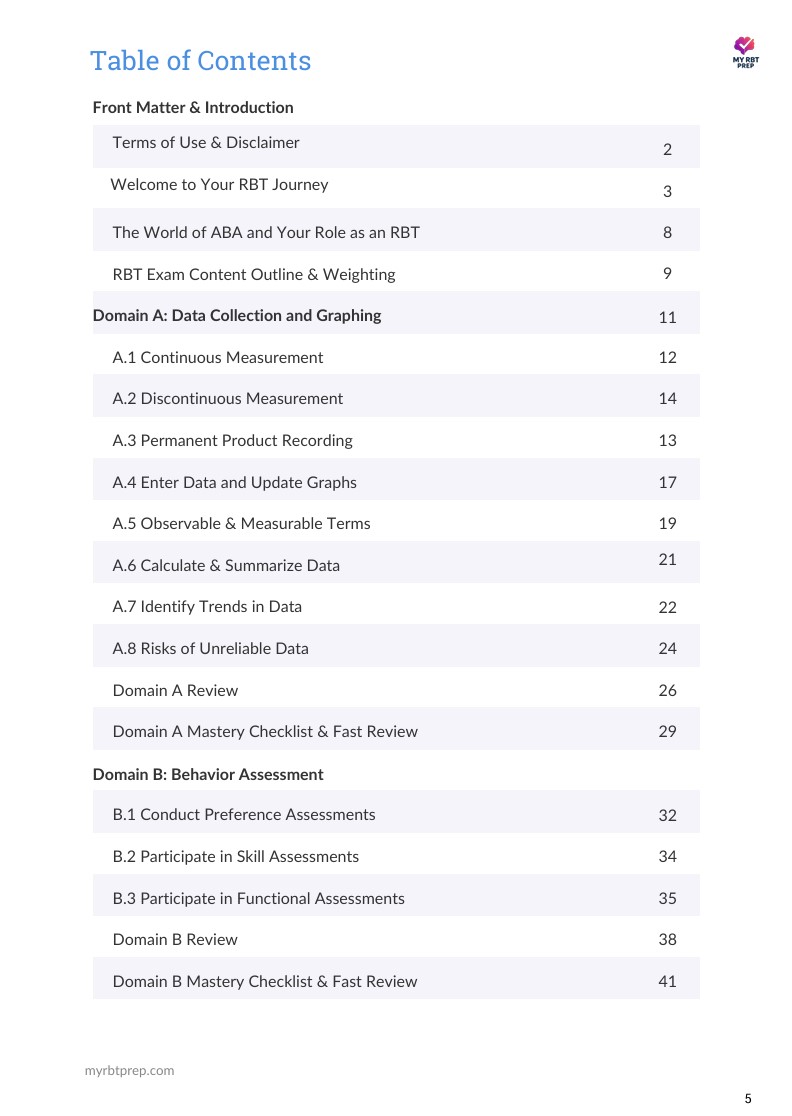 A well-organized study guide that focuses on the most important RBT concepts. It helped me feel more prepared and less anxious while studying.