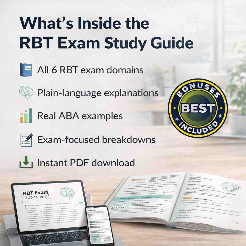 The study guide explains RBT concepts in a simple way. I finally understood reinforcement schedules and prompting without feeling confused.