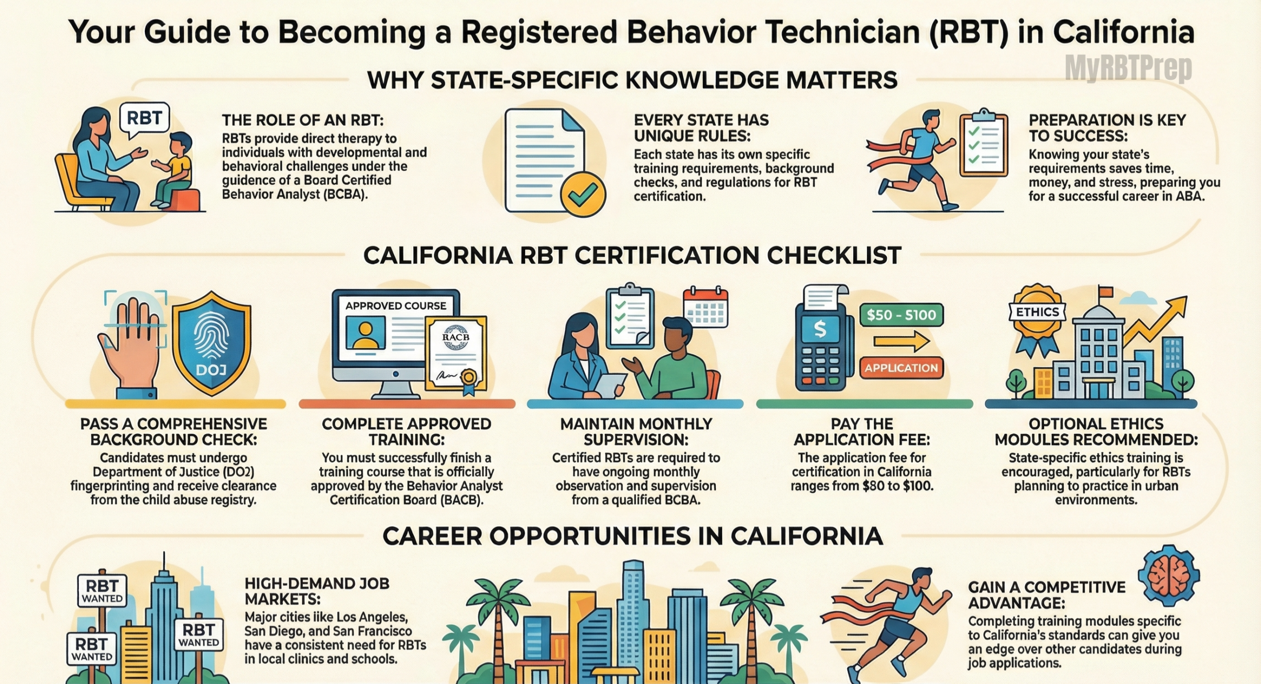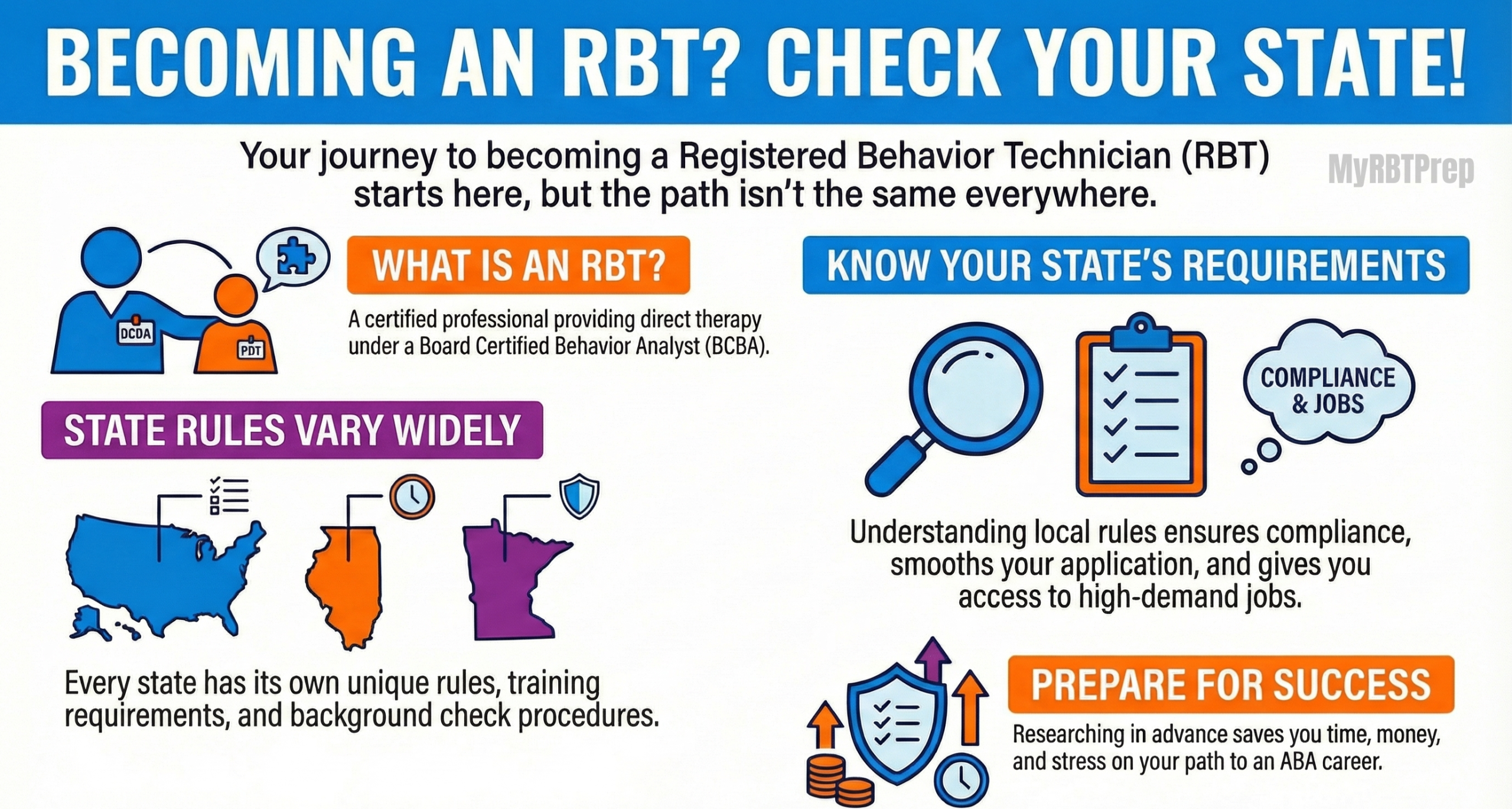 Whether you are in Florida, California, Texas, New Jersey, or any other state, knowing what your state requires will save time, money, and stress while preparing you for a successful ABA career.