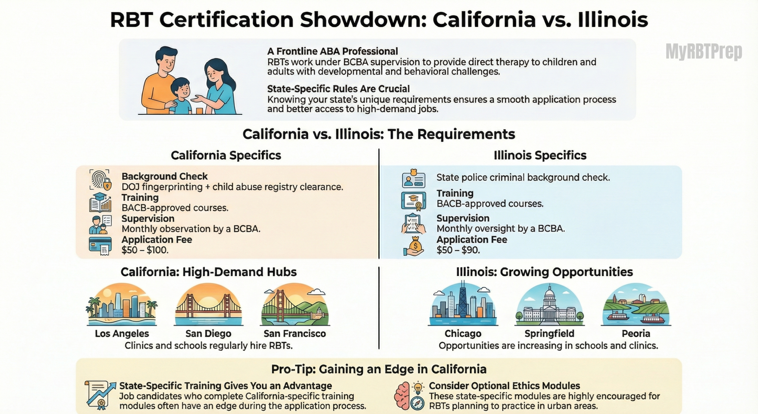 Illinois requires a criminal background check, BACB-approved training, and BCBA supervision.