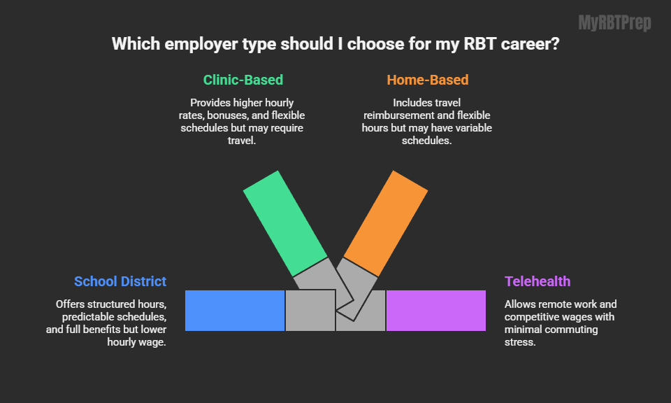 Choosing the right employer depends on individual priorities—some RBTs prefer predictable hours and structured support, while others prioritize higher pay, bonuses, and career growth opportunities. Understanding employer type is key to maximizing income and professional satisfaction.