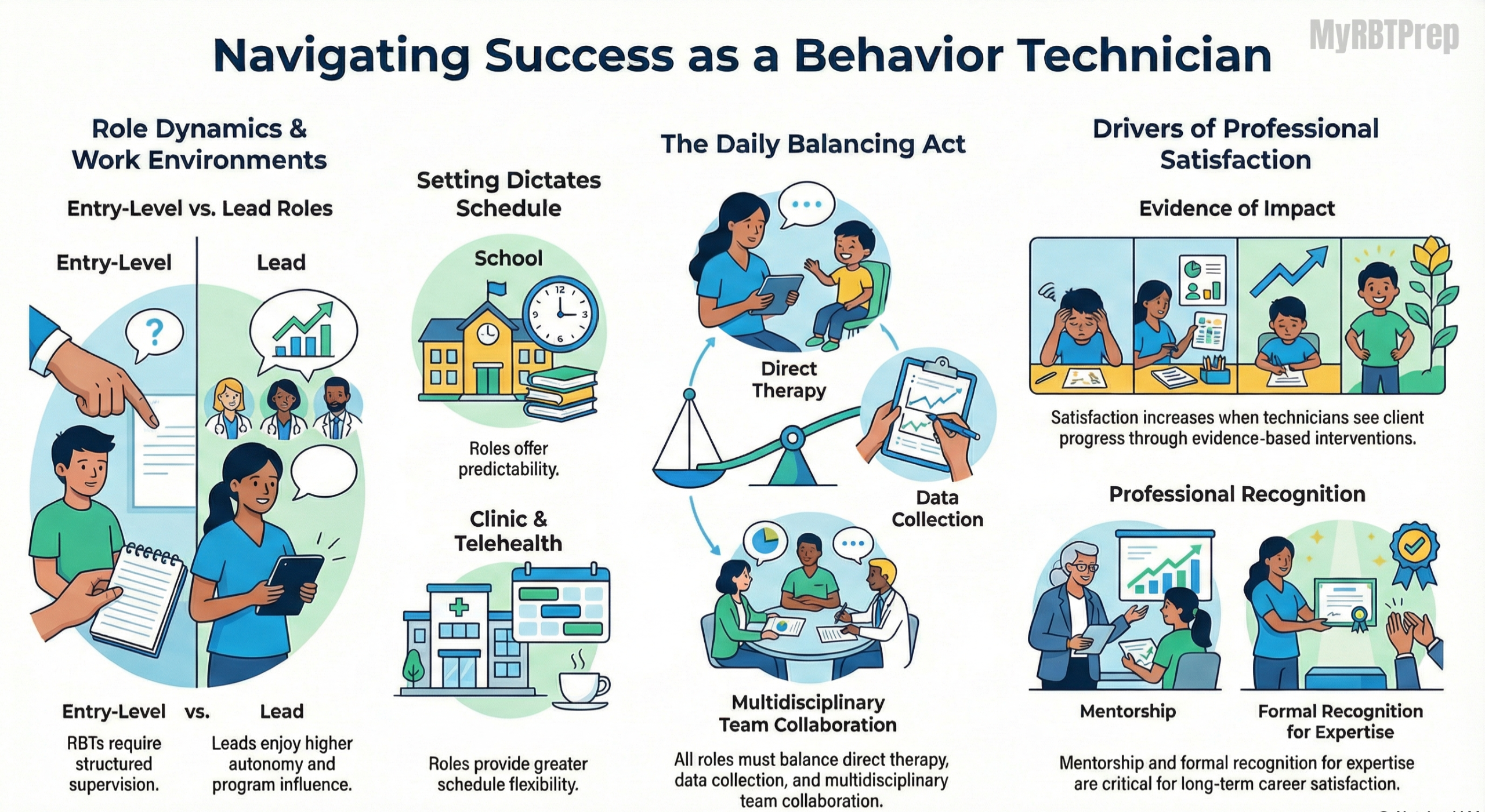 Satisfaction increases when RBTs see the impact of evidence-based behavior interventions on client progress and receive mentorship and recognition for their expertise.