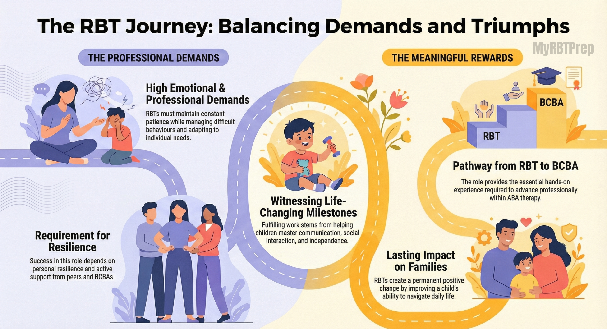 Career Path Opportunities to advance from RBT to BCBA, with higher salaries and leadership roles.