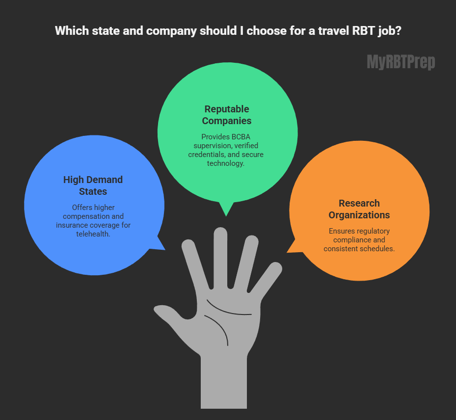 States with high demand for travel RBT jobs include California, Texas, Florida, Georgia, and New York. These regions support insurance coverage for telehealth and often provide higher compensation due to high living costs. Companies such as BehaviorFrontier, Autism Learning Partners, and Monarch Teaching Technologies frequently offer travel assignments with housing and travel allowances.