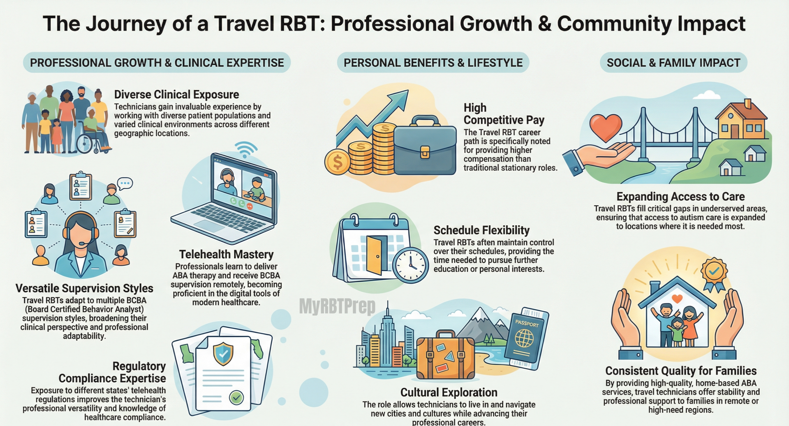 | Work & Exploration | Travel RBT roles allow technicians to experience new cities, local cultures, and professional networking opportunities while delivering quality care. |